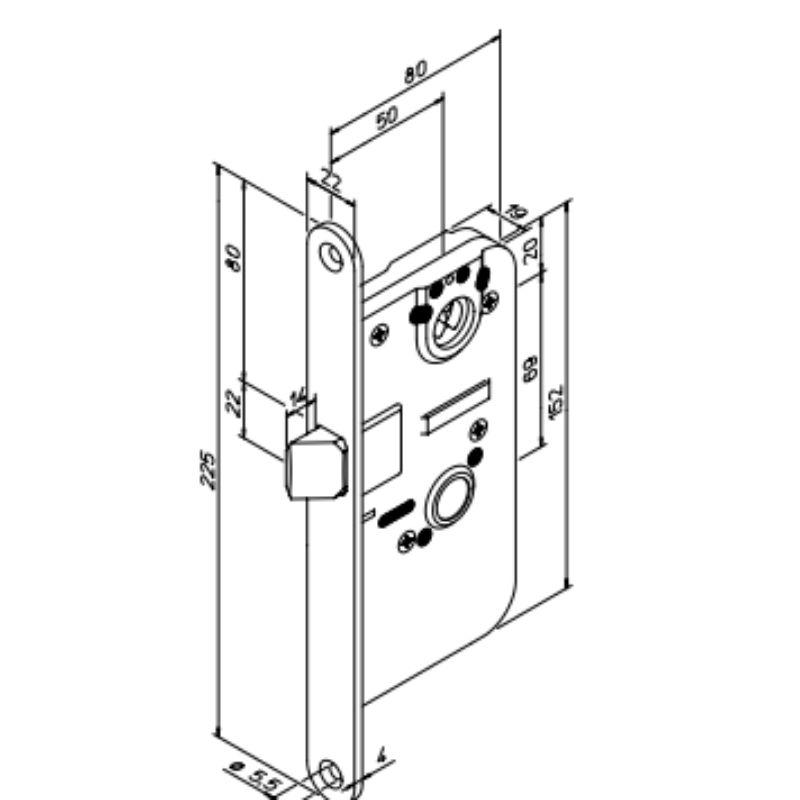 The non-deadlocking latchbolt protrudes 14 mm.